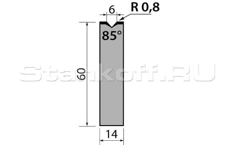 Н (высота), 60. Градус гиба, 85. Тоннаж, 1000. Материал, C45:560-710 N/mm².