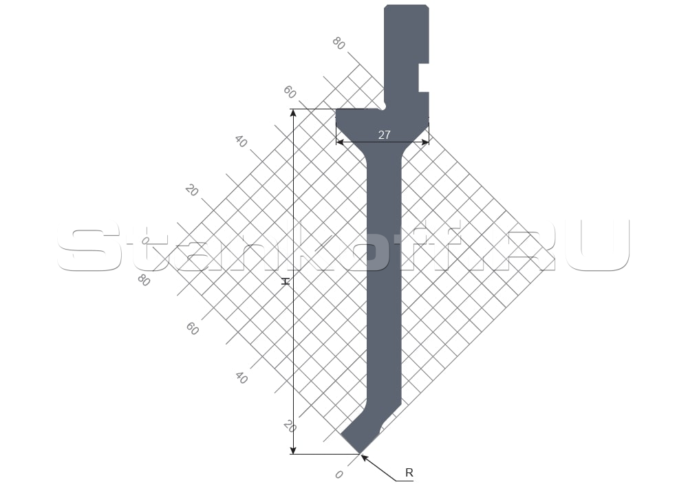 Угол, 88°. Радиус, 0,8 мм. Высота, 99,65 мм. Max нагрузка, 30 т/м. Материал, 42CrMo4.