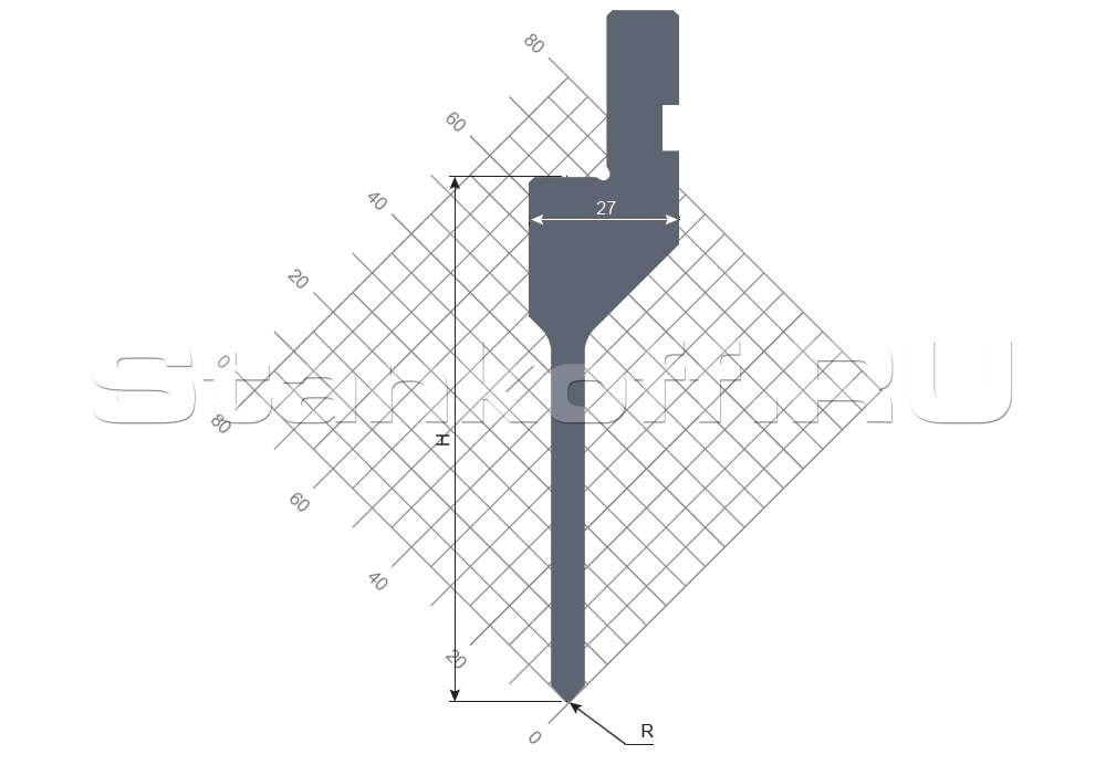 Угол, 85°. Радиус, 0,6 мм. Высота, 94,4 мм. Max нагрузка, 50 т/м. Материал, 42CrMo4.