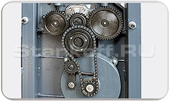 Осуществляется посредством цепной и шестеренчатой передачи. Которая обеспечивает плавную передачу крутящего момента без значительных потерь мощности, а также удобство обслуживания и эксплуатации. Легкий доступ обеспечивает технологический лючок.