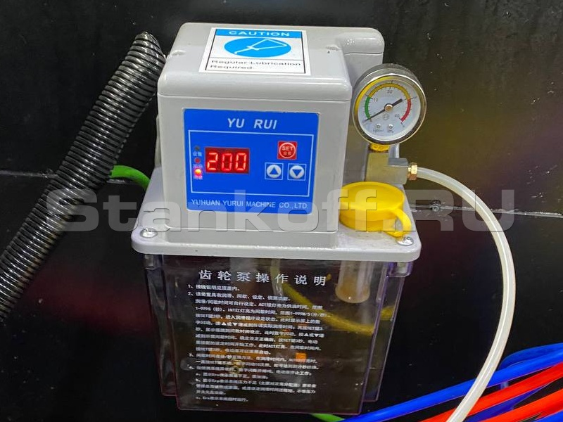 Светодиодная сигнальная колонна предназначена для яркой световой сигнализации аварийных, предаварийных, штатных режимов работы для обеспечения безопасности. Сигнальная колонна позволяет эффективно решить проблему быстрого реагирования персонала при возникновении чрезвычайных ситуаций, помогает осуществлять контроль нормальной работы станка с помощью световой индикации.Автоматическая система смазки