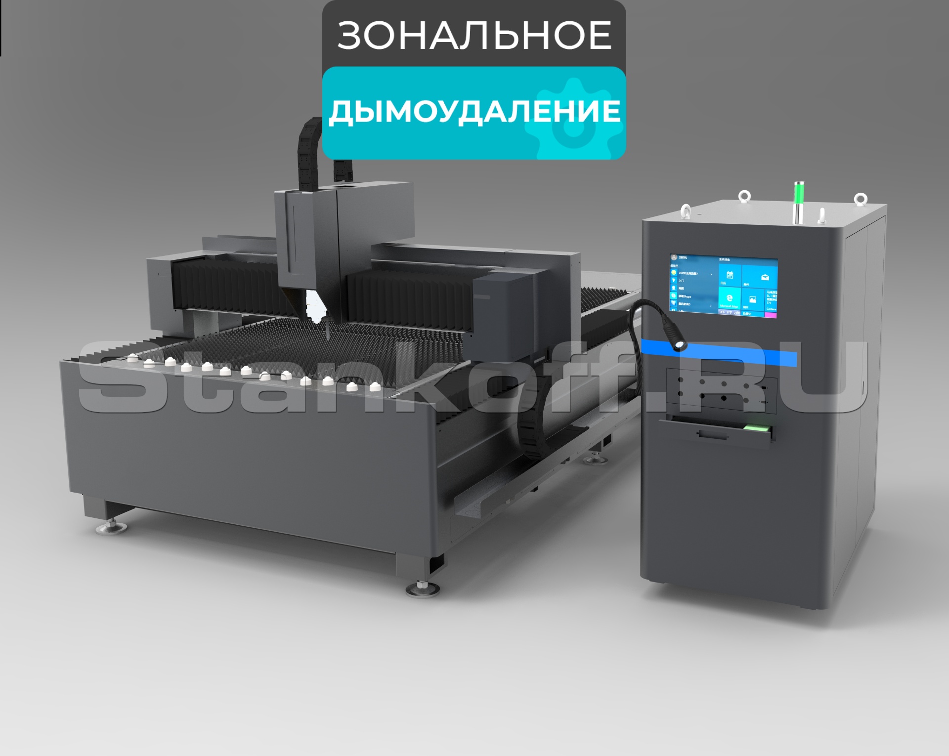 Вытяжной вентилятор используется для удаления газов горения. Для подключения вентилятора необходимо предусмотреть удаленное выключение. Если в помещении предусмотрена система очистки воздуха, можно подключить вентилятор к этой системе.Все электрические компоненты интегрированы в стойку управления ЧПУ. Из предустановленного П.О. происходит управление лазерным комплексом, а также калибровка необходимых узлов перед запуском в работу оборудования.