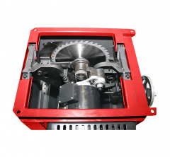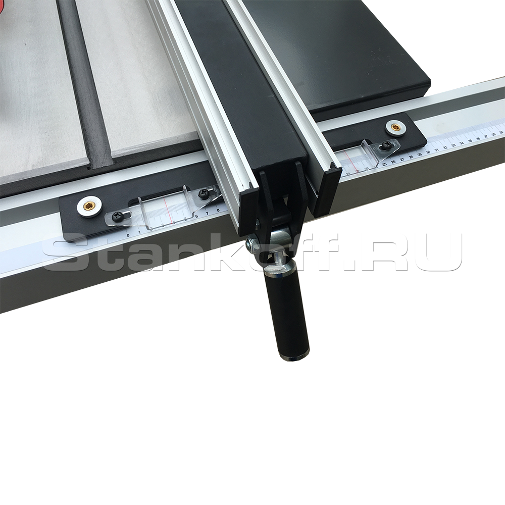 Пила наклоняется от параллельного упора (левый наклон) при продольном резании со скосом для предотвращения вырыва на внешнем угле углового соединения. Большой чугунный стол с чугунными расширителями для обеспечения максимальной опоры материала. Подвижный угловой упор для использования в Т-образном пазу с предустановленными углами на 45° и 90°. Асинхронный двигатель выходной мощностью 1,5 кВт обеспечивает обработку труднообрабатываемых заготовок. Профессиональный параллельный упор со стальным корпусом и алюминиевыми накладками. Угловой упор (транспортир) с регулировкой.