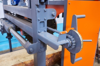 Вертикальное перемещение каретки оборудования происходит по прочным направляющим благодаря сложному цепному механизму с электроприводом. Для вертикального же передвижения применяется цепная передача.