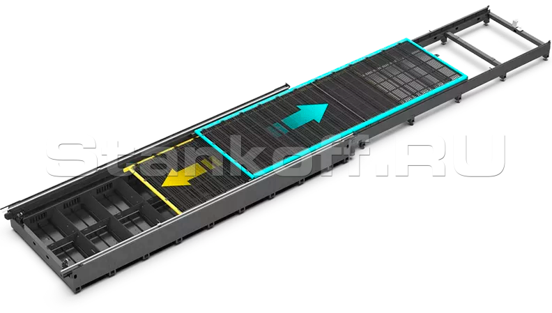 Сменный стол значительно сокращает время подачи и улучшает производительность. Скорость переключения паллет составляет всего 40 секунд.Автоматизированная зональная система дымоудаления