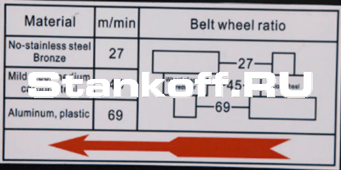 Предохранительные концевики на кожухе маховика, оберегающие станок от поломок в случае если лента повреждена. Привод - гибрид (зубчатый привод + клиноременная передача).Предохранительный концевик