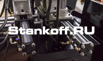 Гидравлические тиски стационарные (тиски фиксации заготовки в зоне резания) и гидравлические тиски подающие (тиски подачи заготовок в зону резки).Подающие гидравлические тиски