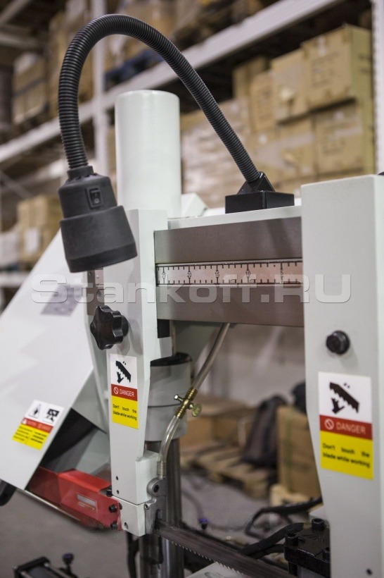 Две направляющие перемещающиеся по салазкам для регулировки жесткости полотна относительно размера заготовки.Предохранительные концевики