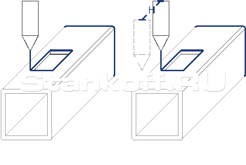 Также доступны функции компенсации толщины лазерного луча, для достижения абсолютно точных размеров изготавливаемой продукции. Возможность выставлять точки вреза вне контура обработки заготовки под произвольным углом и на разных расстояниях, как в автоматическом так и в ручном режимах.