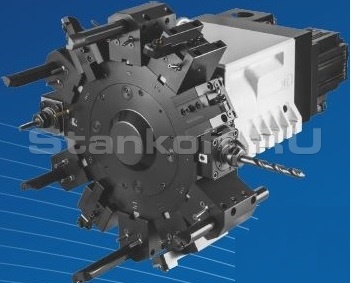 На станке KTL65M/750 установлена сервоприводная револьверная голова фирмы Sanhe (Китай) на 12 позиций с приводным инструментом, тип крепления – BMT65. Система крепления BMT имеет преимущество в жесткости крепления инструментальных блоков.Задняя бабка