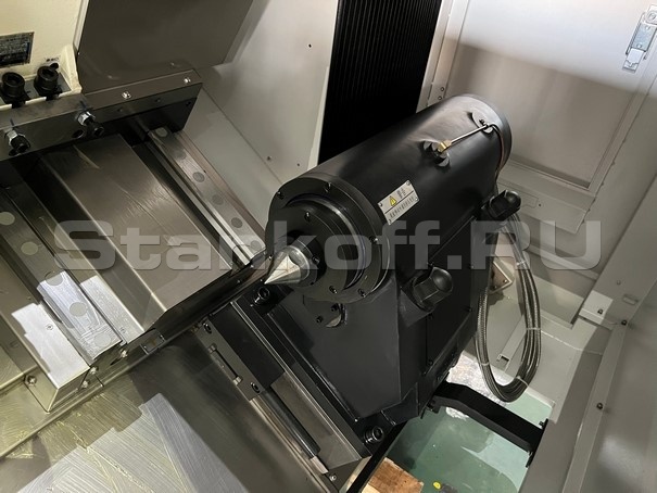 На станке установлена гидравлическая задняя бабка. Ход пиноли производится я за счет гидравлики. Установка задней бабки в рабочую позицию осуществляется вручную.