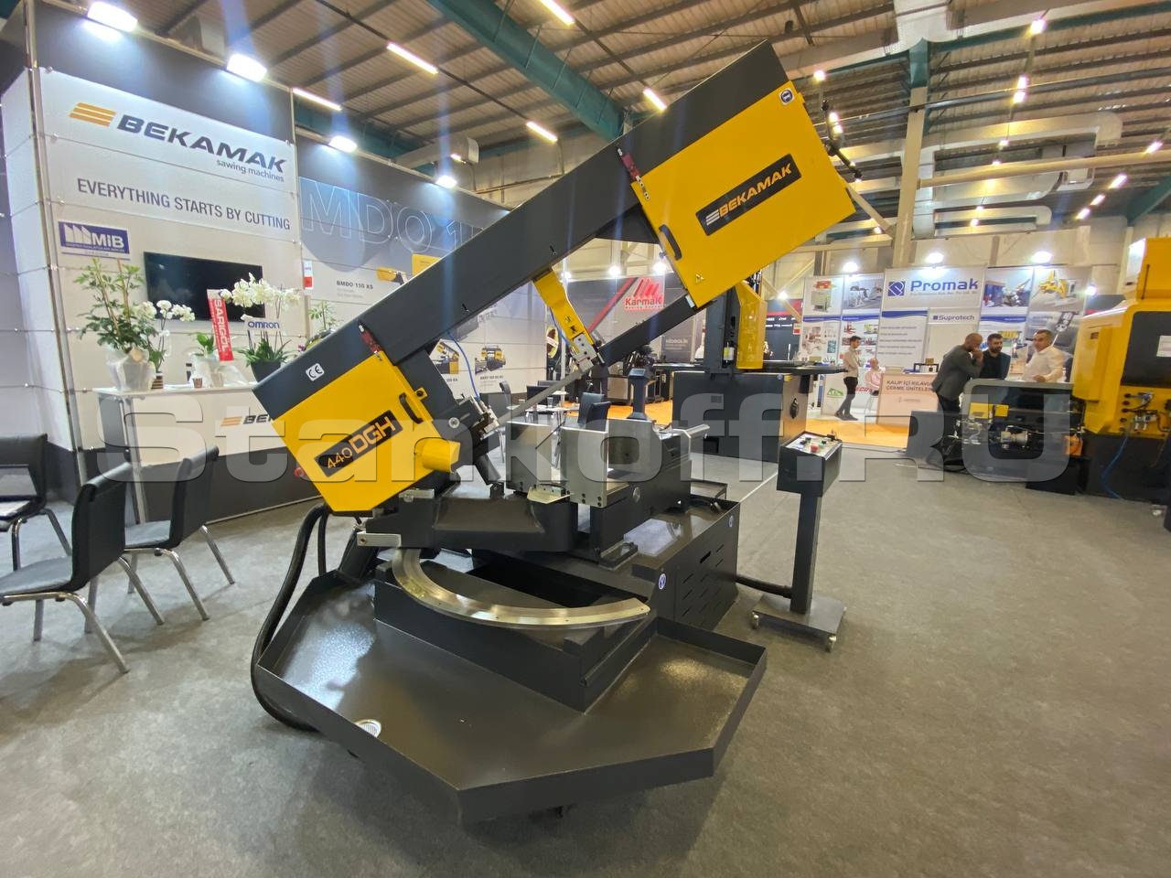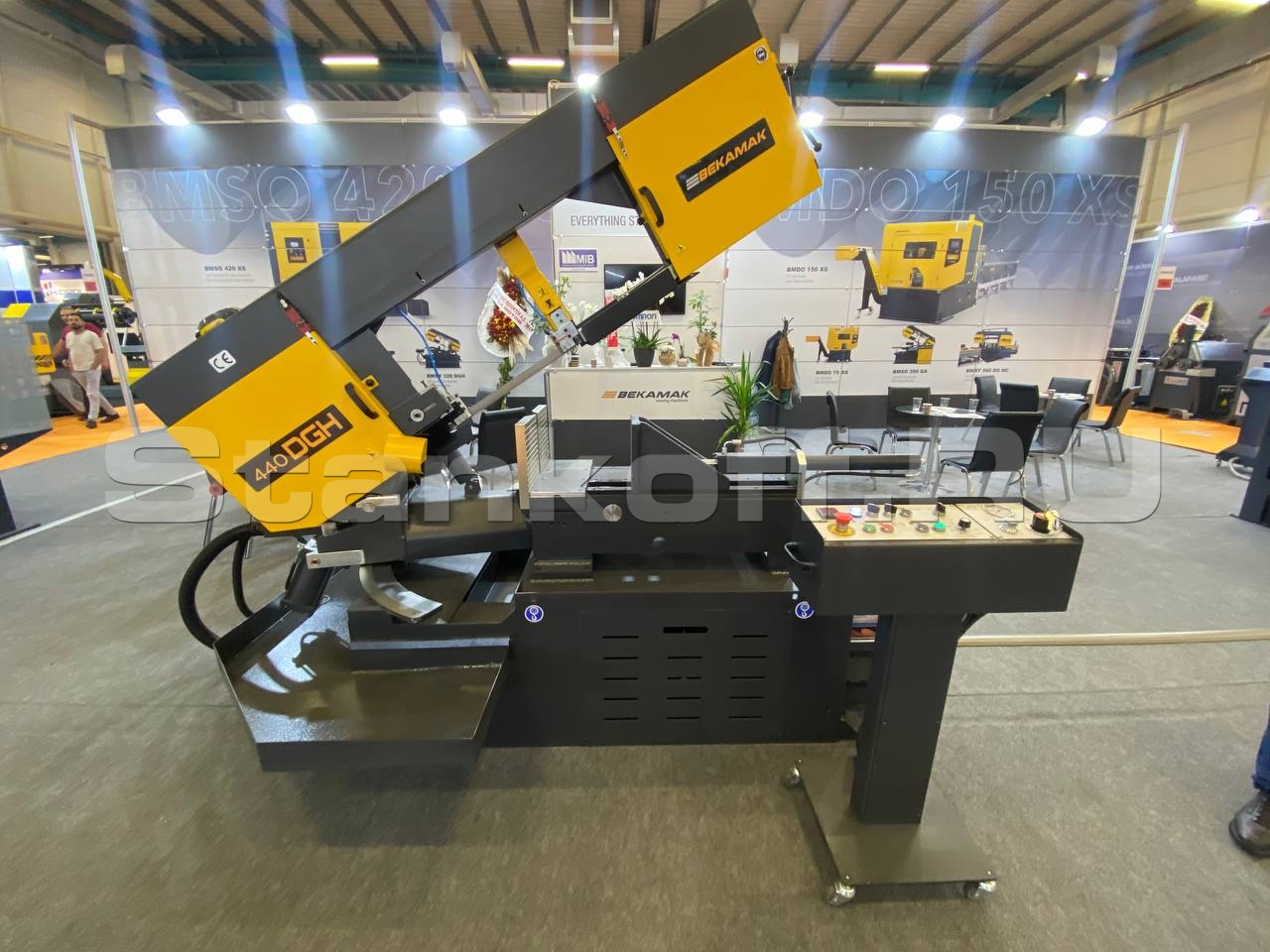 Полуавтоматический ленточнопильный станок BMSY 440 DGH турецкого производителя Beka-Mak с длиной ленточного полотна 5200 мм, высотой рабочей поверхности 860 мм и скоростью резания 20-100 м/мин используется для производительной резки профильного и сплошного металлопроката. Подходит как для нарезки пакета заготовок, так и профилей большого размера. Возврат пильной рамы в исходное положение и зажим заготовки происходит с помощью гидравлики, после команды оператора.
