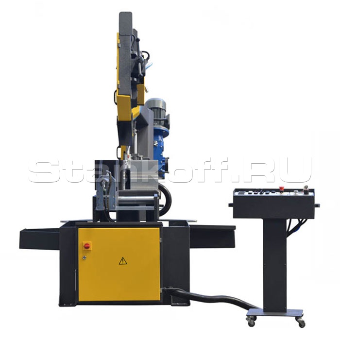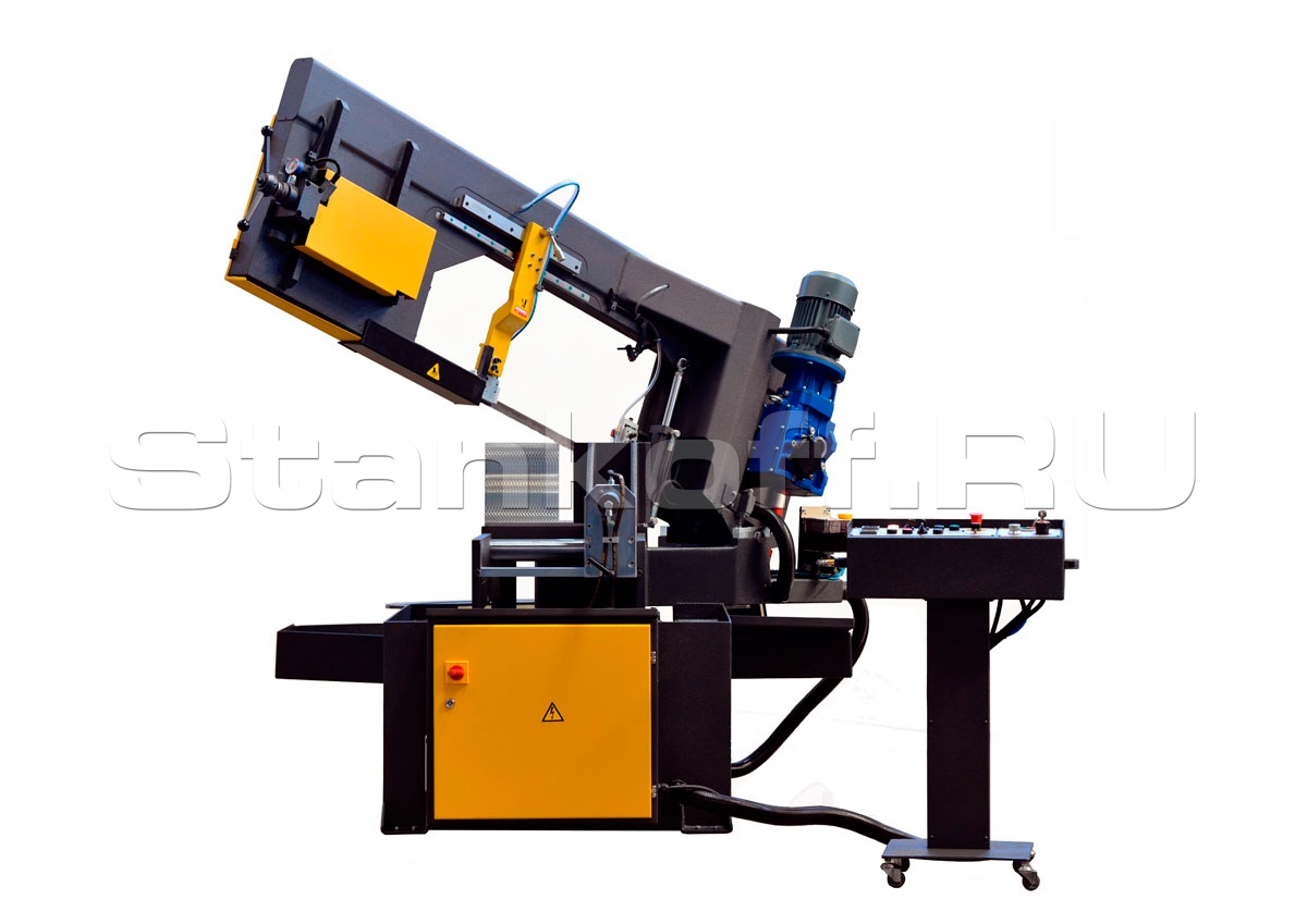 - Бесступенчатая регулировка скорости ленточнопильного полотна в стандартной комплектации. Позволяет точно настроить режимы резки под конкретную заготовку, тем самым увеличив срок службы ленточнопильного полотна.