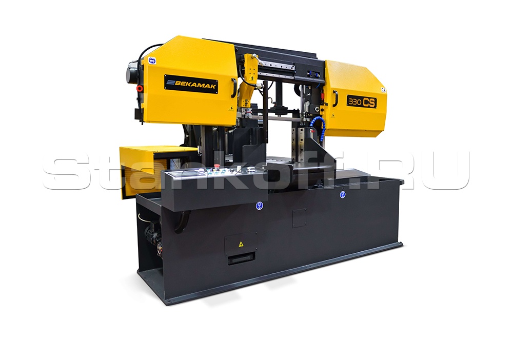Двухколонный автоматический ленточнопильный станок Beka-Mak BMSO-330CS NC предназначен для высокопроизводительной резки профилей, труб, прутков, поковок и пакетов заготовок. Станок оснащён двумя парами гидравлических тисков, вторые из которых подают заготовку на заданную длину до 700 мм за один перехват.