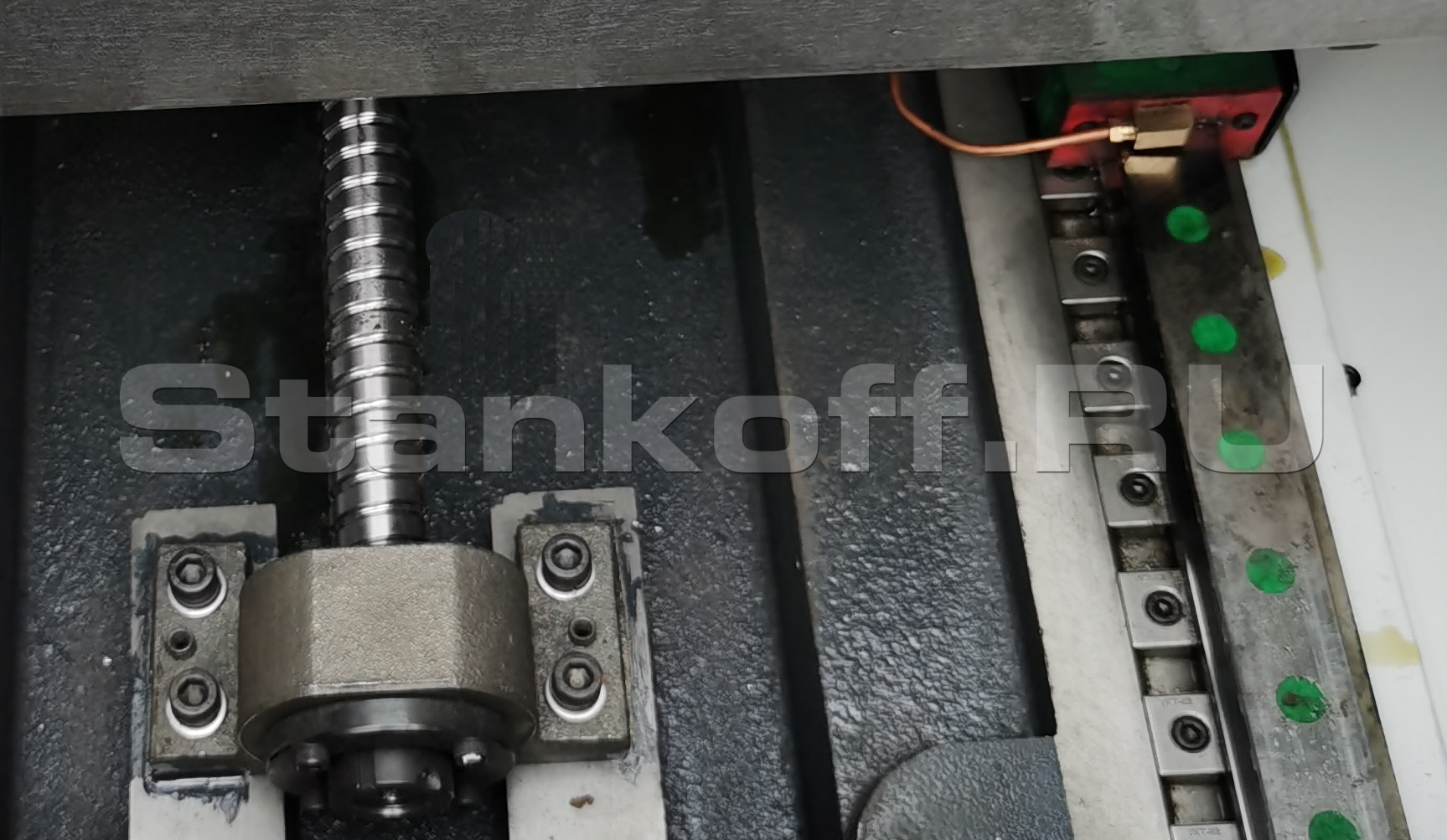 Представляют собой модули преобразования крутящего момента двигателя в перемещение закрепленного на винте рабочего компонента станка. ШВП состоят из несущего винта, гайки-блока с обоймой шариков а также механизма циркуляции шариков внутри гайки-блока. Шарико-винтовые передачи HIWIN используются в качестве передач перемещения по всем 3 осям (X / Y / Z). Превосходное качество производимых компонентов, позволяют добиться высочайших технических показателей точности, надежности и жесткости.Автоматическая система смазки