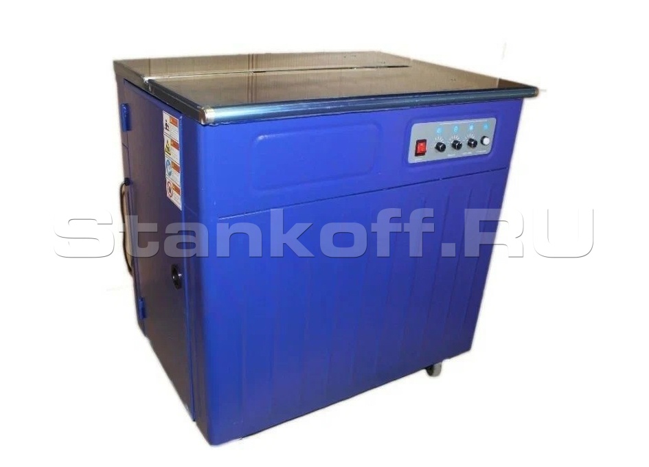 Машина предназначена для обвязки полипропиленовой (ПП) лентой небольших и средних по размеру предметов. Может применяться как для штучной, так и групповой упаковки товаров. Ширина ленты может регулироваться оператором в диапазоне от 6 до 14 мм. Свободный конец ленты подается в устройство, машина сама создает требуемое натяжение и сваривает ленту.