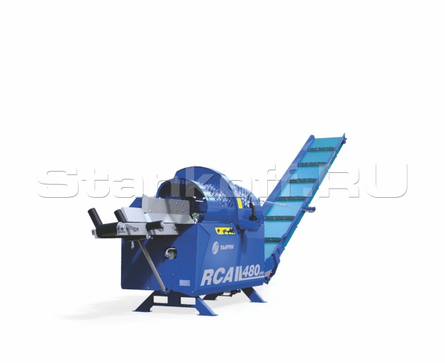 Ограничитель вылета бревна точно регулирует длину получаемого чурбака, обеспечивающее свободное падение в зону раскалывания. Длина вылета свободно регулируется от 200 до 500 мм с шагом 50мм, в зависимости от необходимой длины получаемых дров.Транспортер