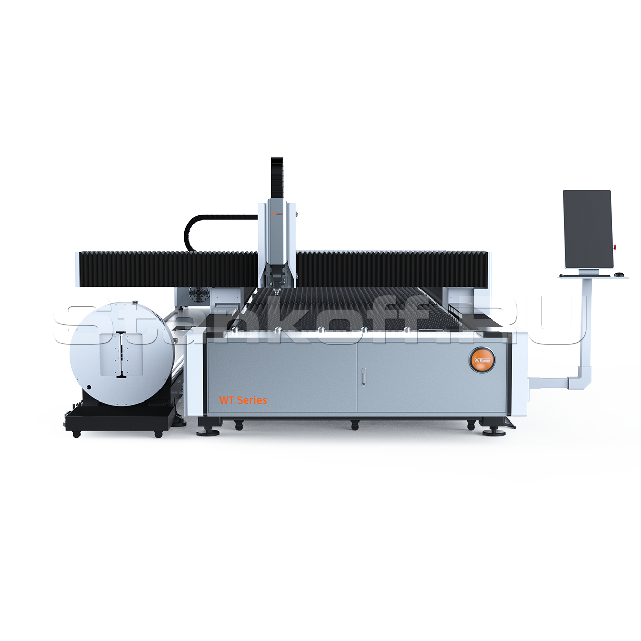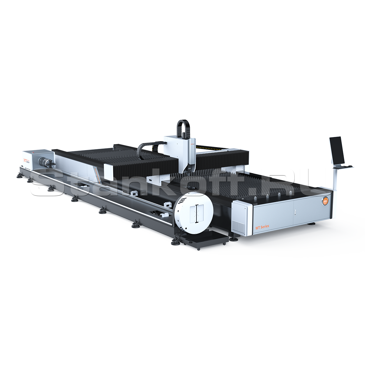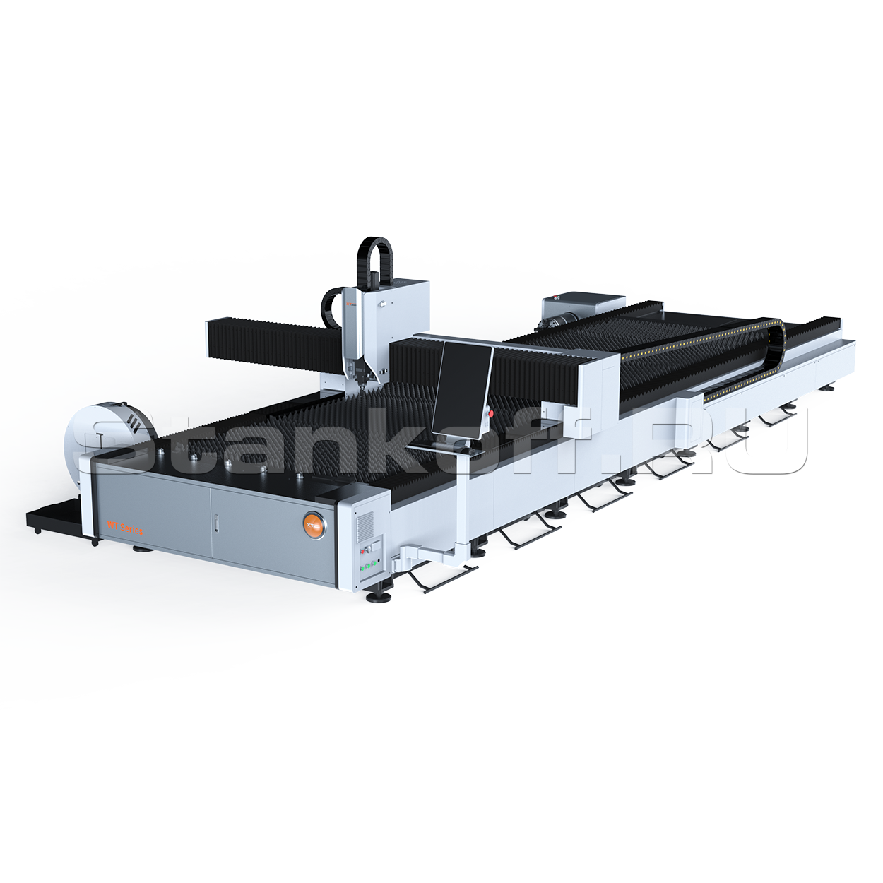 Все подвижные механизмы станка закрыты защитными кожухами для предотвращения попадания крупно и мелкодисперсной металлической пыли. Для удобства эксплуатации лазерный комплекс оснащён централизованной системой автоматической смазки. Система подаёт смазывающую жидкость в подвижные элементы с заданным давлением и интервалом.Современный вертикально-ориентированный экран