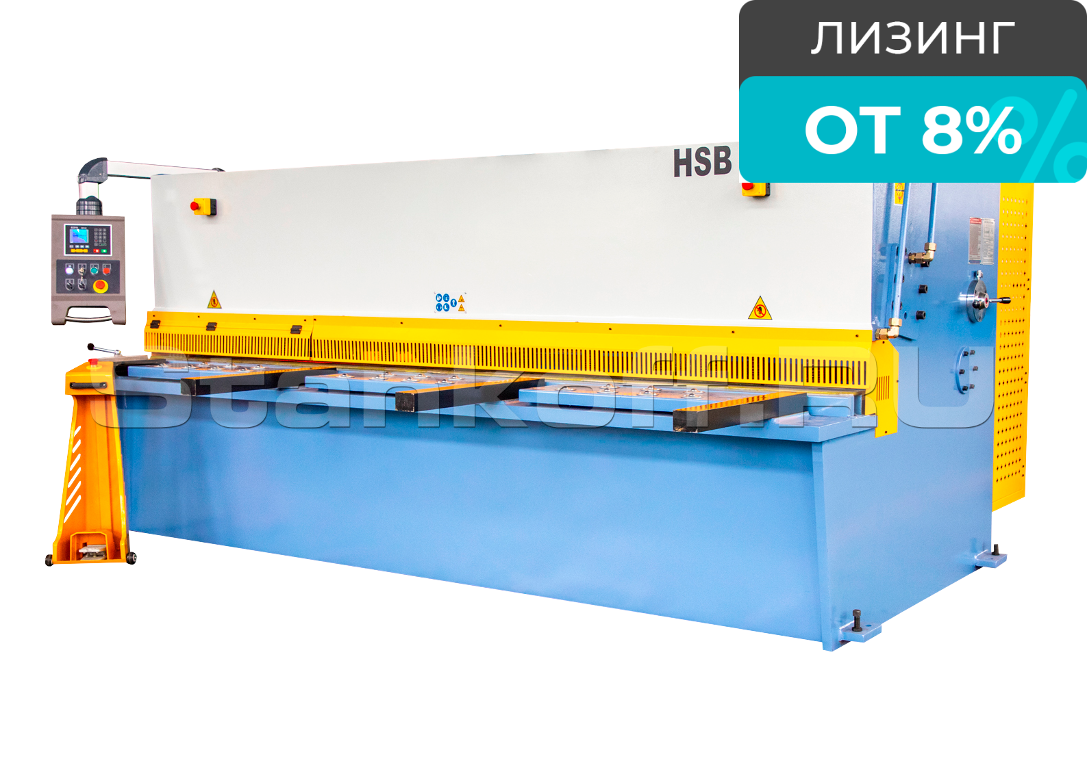 Гильотина гидравлическая HSB 3200x6 предназначена для быстрой и точной резки в тяжелом машиностроении в ряду предприятий занятых металлургических, машиностроительных и других отраслях. Режущая балка с поворотным ходом ножа перемещается относительно неподвижной точки, оптимизированный угол резания, прочная массивная конструкция, стол с неподвижными ножами и шариковыми опорами для подачи листа в зону резания, гидроцилиндры передающие усилие на режущую балку и моторизированные задние упоры. Данное исполнение признано надёжным и качественным решением и является классическим образцом гидравлических гильотин. Гидравлический привод и закаленные режущие ножи обеспечивают стабильный качественный рез.