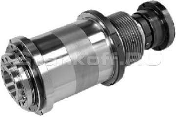 Мощный высокоточный шпиндель с фланцем Camlock D8 подключается к сервоприводу через ременную передачу и зубчатый редуктор с тремя передачами. Сам шпиндель имеет метрический конус 90 мм, а диаметр его передней опоры равен 120 мм. Данная кинематическая схема позволяет получить крутящий момент на шпинделе вплоть до 1300 Н∙м, что дает возможность производить силовую обработку деталей большого диаметра с большим съемом обрабатываемого материала.Автоматическая смена диапазонов вращения