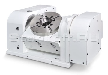 Станок оснащен наклонно-поворотным столом модели CNCT-250 от производителя GSA (Тайвань). Позволяет производить 5-осевую обработку, не изменяя конструкцию станка и его электрооборудование.Автоматическая система смены инструмента