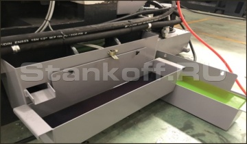 Теплообменник электрошкафа обеспечивает охлаждение компонентов электрошкафа при работе оборудования в двух-трех сменном режиме. Компенсирует перепады температур в цехе, особенно при превышении температурных норм эксплуатации.Транспортер для удаления стружки ленточного типа с тележкой