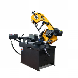 Полуавтоматический маятниковый ленточнопильный станок BMSY-270DG с механическими тисками и скоростью вращения полотна 15-120 м/мин используется для резки сталей, включая инструментальные, нержавеющую сталь и титан, профильного и сплошного сечения.
