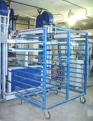 Основная функция данной тележки — автоматизация процесса укладки деревянных или других профилированных изделий на полки для последующей обработки, например, сушки или транспортировки.