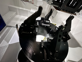 Зона выгрузки оснащается столом с активной поддержкой труб, на котором установлены большие ролики. Ролики могут вращаться на 360 градусов в зависимости от размера трубы и надёжно фиксироваться в нужном положении. Максимальный диаметр круглых труб, которые можно использовать на данном столе, составляет 220 мм, а максимальный размер квадратных труб - 150 мм.Сервостол в защитной кабине и конвейером выгрузки труб (4 метра)