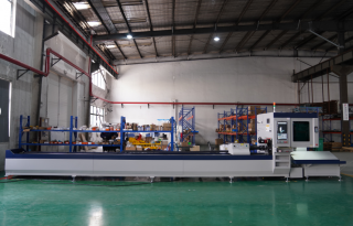 Полуавтоматическая система погрузки конвейерного типа обеспечивает подачу обрабатываемых труб в зону резки. Конвейерная погрузка управляется с использованием ЧПУ, позволяя удалённо контролировать и настраивать параметры системы погрузки. Максимальное количество загружаемых труб – 6 штук. Вес одной трубы не должен превышать 150 кг, а её длина должна быть не менее 3 500 мм. Время загрузки первой трубы составляет 30 секунд, а последующие 20 секунд. Общая длина системы погрузки составляет 6000 мм.Стол для активной поддержки трубы в зоне выгрузки (1,5 метра)