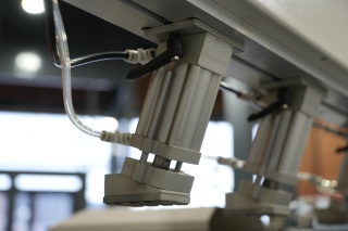 Система фиксации из 8 передвижных пневмоприжимов обеспечивает равномерное распределение усилия на заготовку, гарантируя её надежное удержание на рабочем столе станка.Система управления Mig