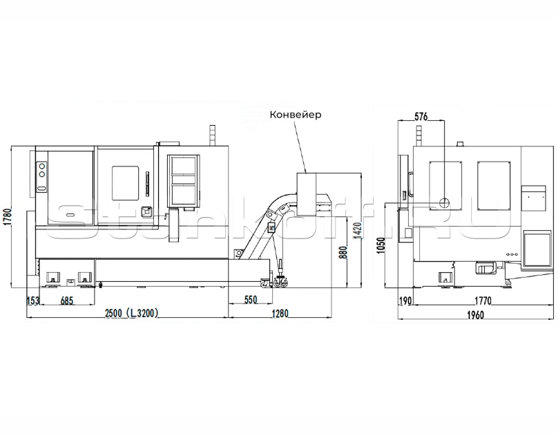 Полностью закрытая рабочая зона с защитными устройствами. Передняя стальная дверь. Максимальная защита персонала. Защита от попадания внутрь станка пыли, влаги и посторонних предметов.Уловитель готовых деталей+конвейер