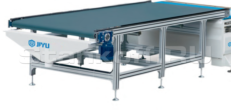 Гидравлический загрузочный стол помогает облегчить подачу материала в зону обработки и автоматизирует процесс обработки плит.Автоматический стол разгрузки