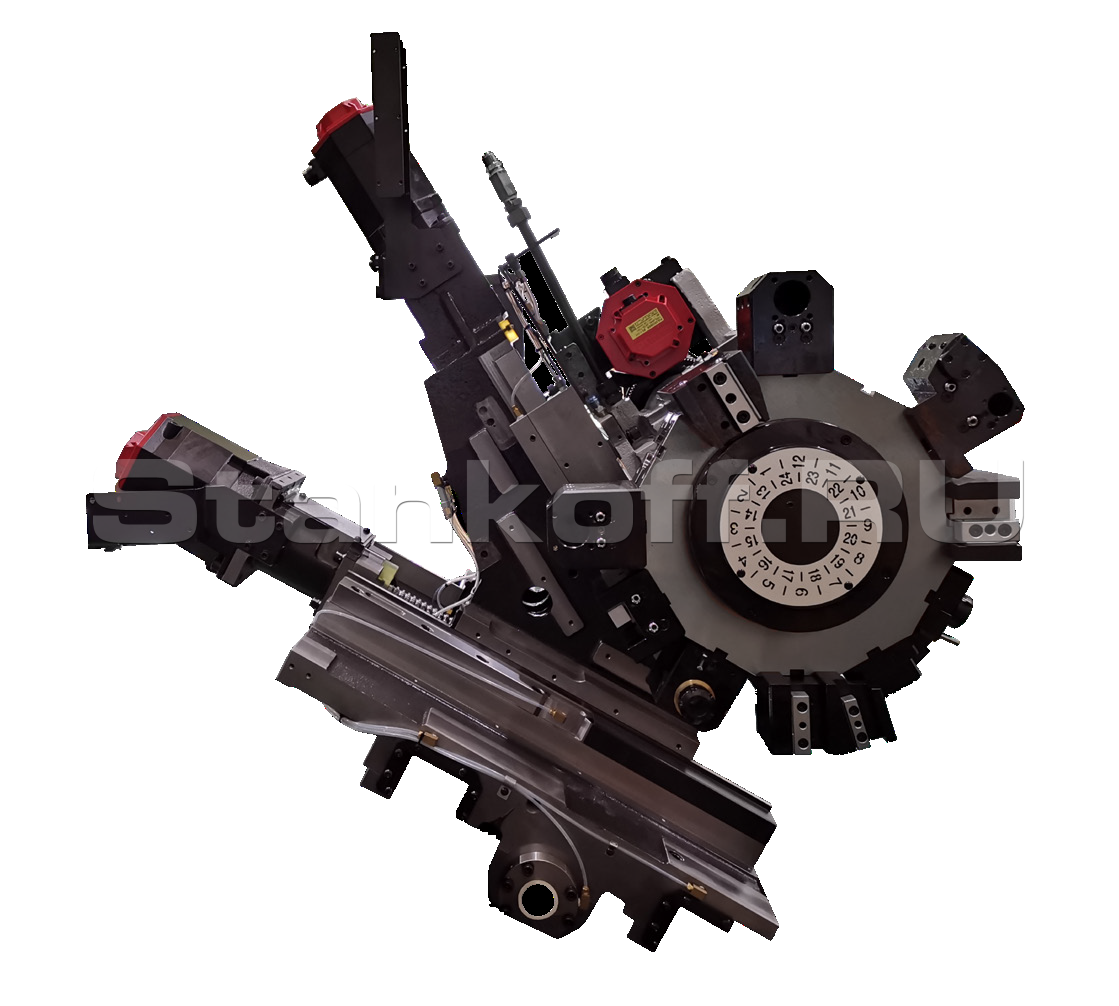 Револьверная головка с приводным инструментом типа BMT65 (крепление на 4 болта) на 12 позиций, оснащена двумя отдельными двигателями для индексации и фрезерования, что улучшает производительность обработки и сокращает время смены инструмента.