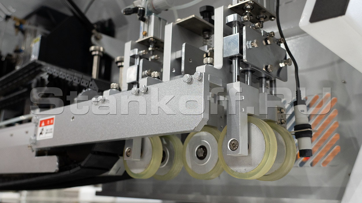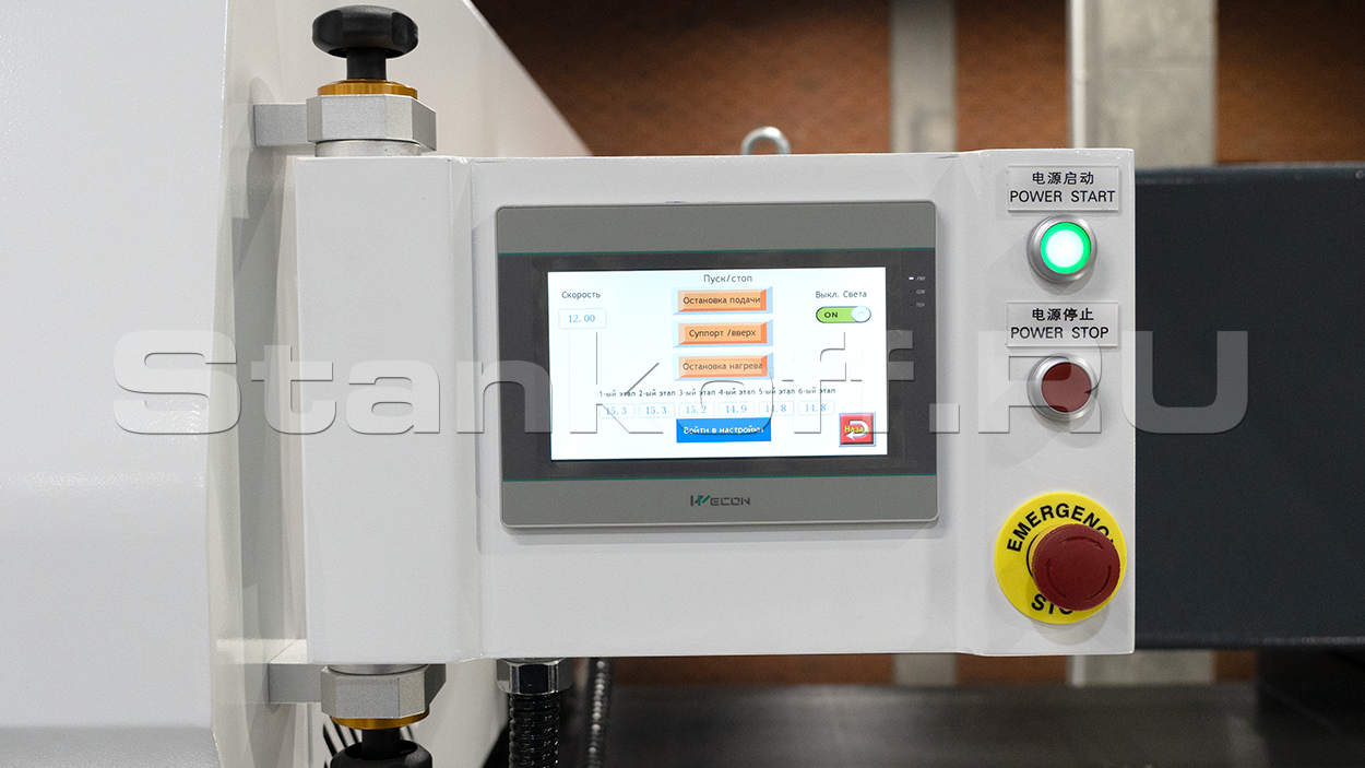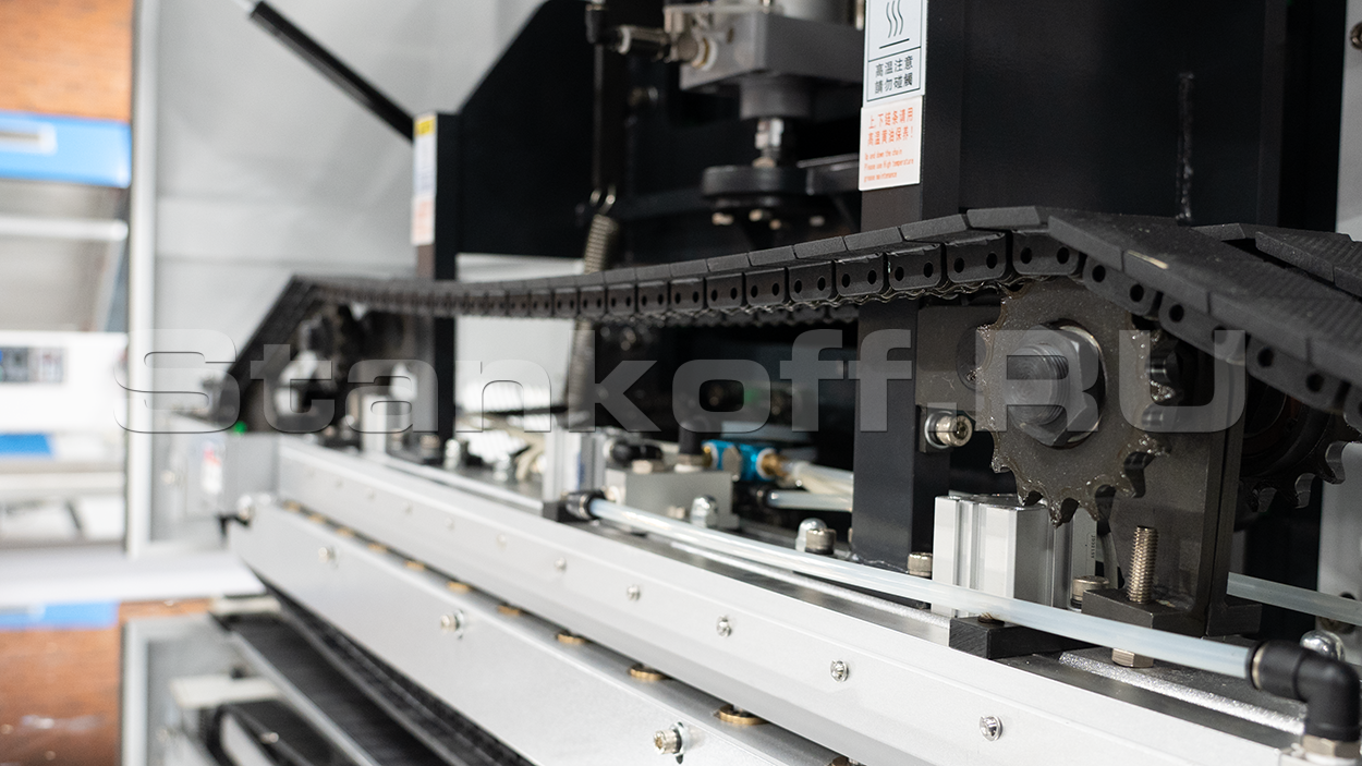Цепи подачи управляются через частотный преобразователь, что позволяет изменять скорость подачи.Нагревательная плита