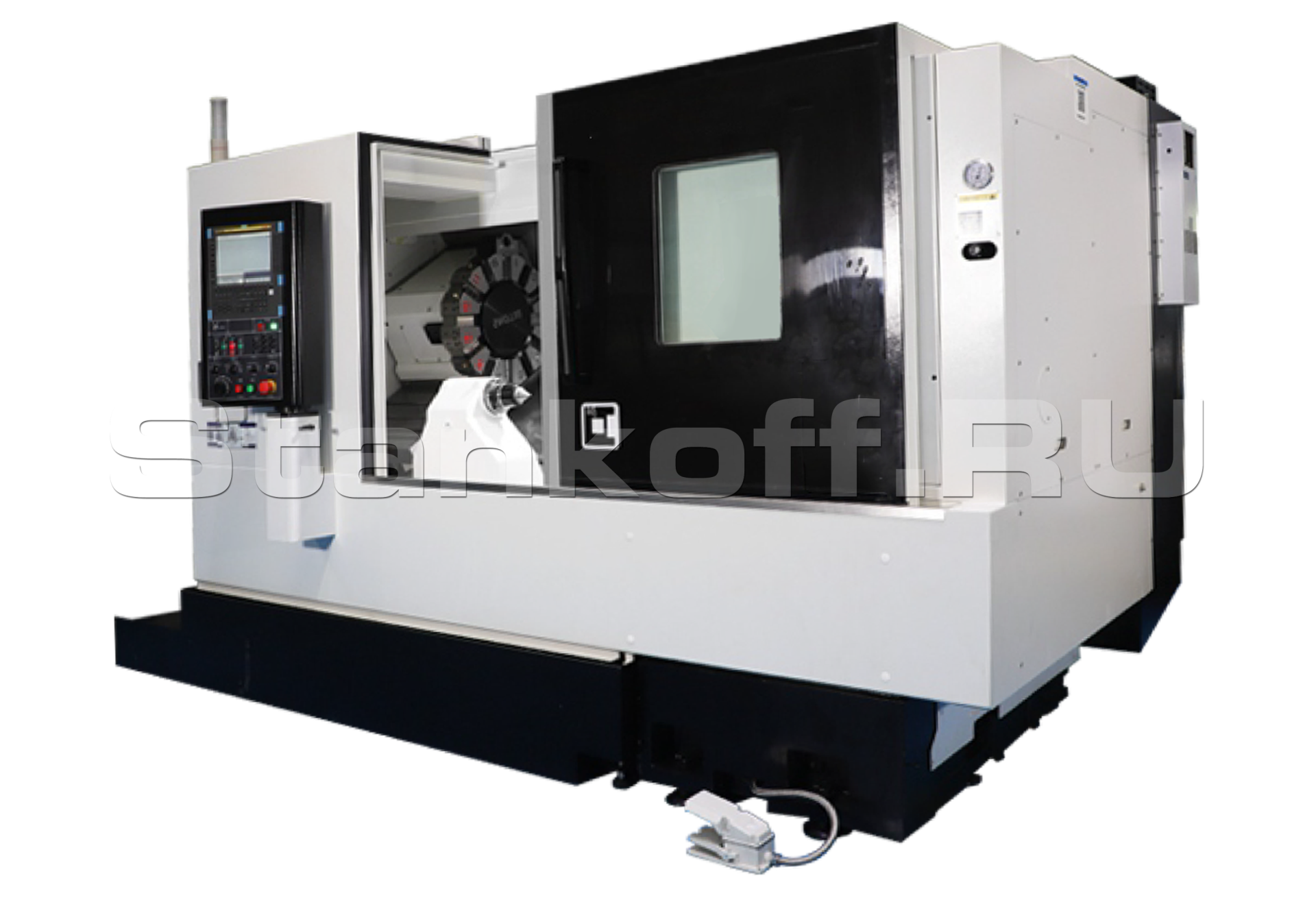 Задняя бабка с встроенным серводвигателем. Перемещается по собственным линейным направляющим независимо от суппорта. Управляется системой ЧПУ. Возможность запрограммировать подвод задней бабки к заготовке и отвод от нее, за счет чего сокращается время обработки. Перемещение задней бабки управляется системой на основе сервопривода, которая программируется командами M-кода. Обеспечивает полностью автоматическое и высокоточное управление, с возможностью гибкой настройки усилия необходимой при обработке детали.ШВП