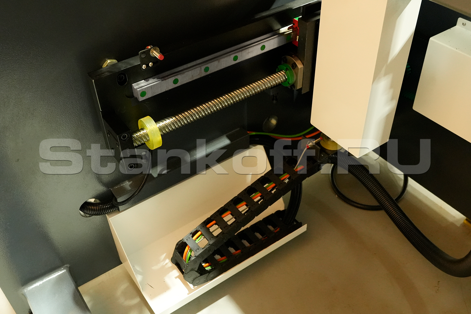 Выполнен на прочной конструкции, что гарантирует высокую повторяемость и точность позиционирования осей. ЧПУ-управляемый задний упор автоматически регулирует оси X (глубина) и R (высота), обеспечивая точное позиционирование материала и, как следствие, более высокое качество готовых изделий.