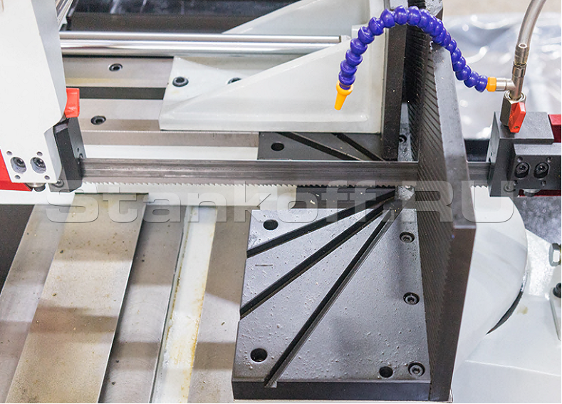 - Длина подачи заготовки контролируется автоматически c ЧПУ (СNC), движение происходит по линейным направляющим гарантирующим точность подачи;
