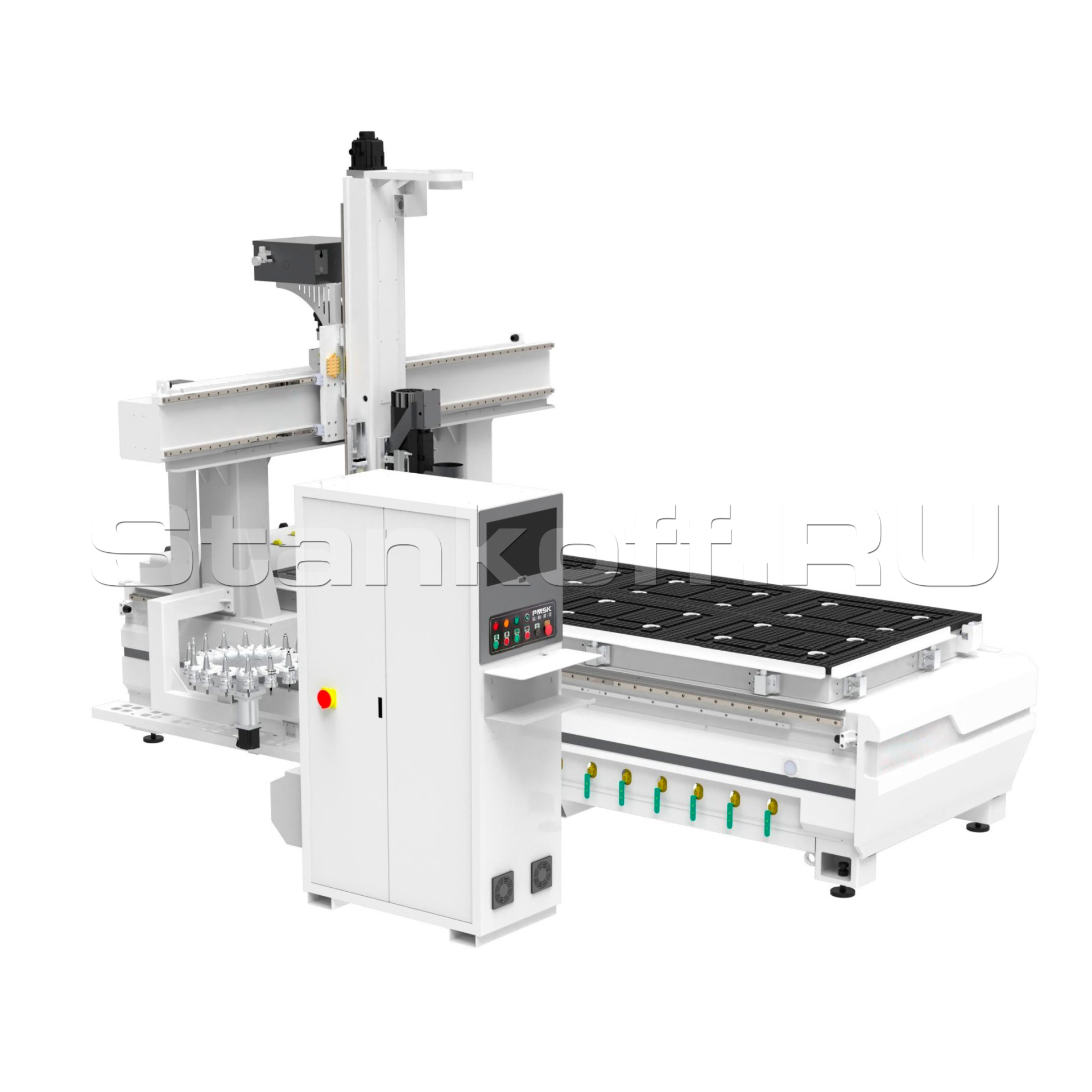 9 кВт шпиндель с автоматической сменой инструмента и дисковым магазином на 16 инструментов с сервоприводом позволяют выполнять широкий спектр операций по обработке плитных материалов.Конструкция