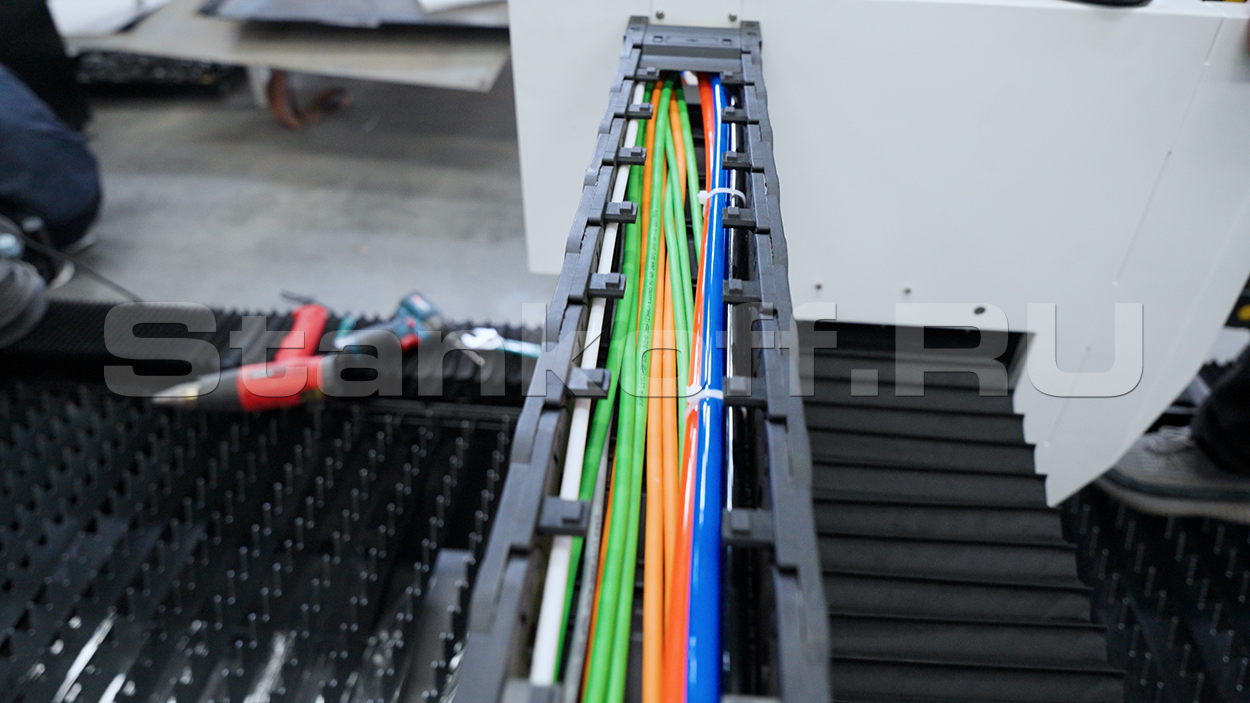 На рабочем столе расположено несколько шаровых опор для облегчения легкости подачи. Еще одним способом подачи является ролик. После подключения газа ролик поднимается выше стола резки таким образом, чтобы обеспечить оптимальную подачу. Одним из важнейших преимуществ данной системы подачи является предотвращение царапин материала. Сокращает время погрузочно-разгрузочных работ на 10%.Гофрозащита и кабельные цепи