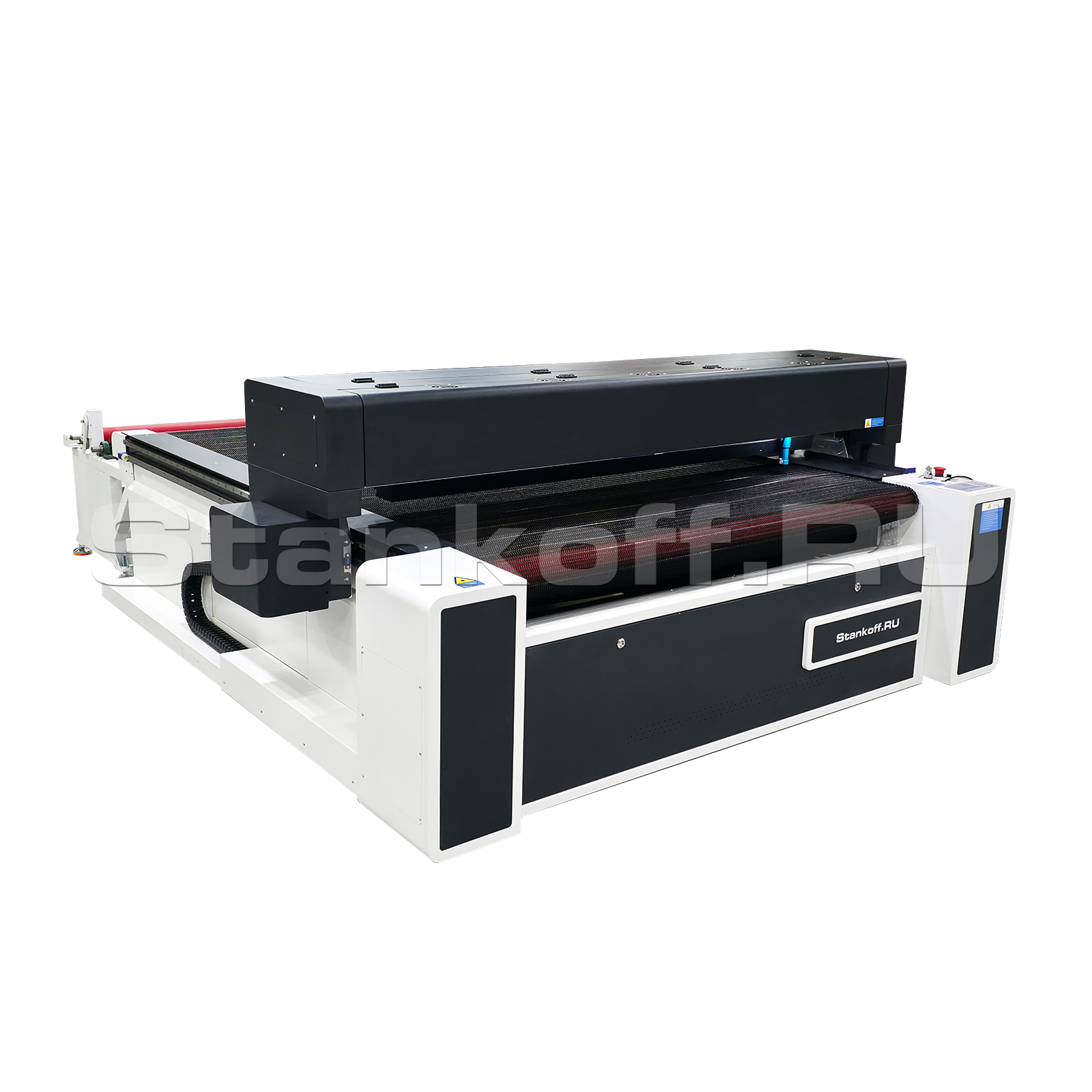 Система автоподачи рулонного материала превращает процесс раскроя ткани в непрерывный, что является альтернативой ручного раскроя, так как станок способен работать в несколько смен, скорость раскроя ткани лазером намного превосходит ручной раскрой, более того уменьшается брак, увеличивается точность и производительность.Высокоточные линейные направляющие повышенной жесткости