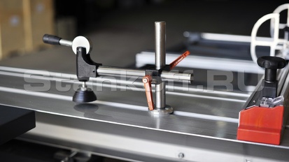 Управление продольным упором осуществляется через ЧПУ контролер. Перемещения упора осуществляется при помощи сервомотора.Упор для угловых резов