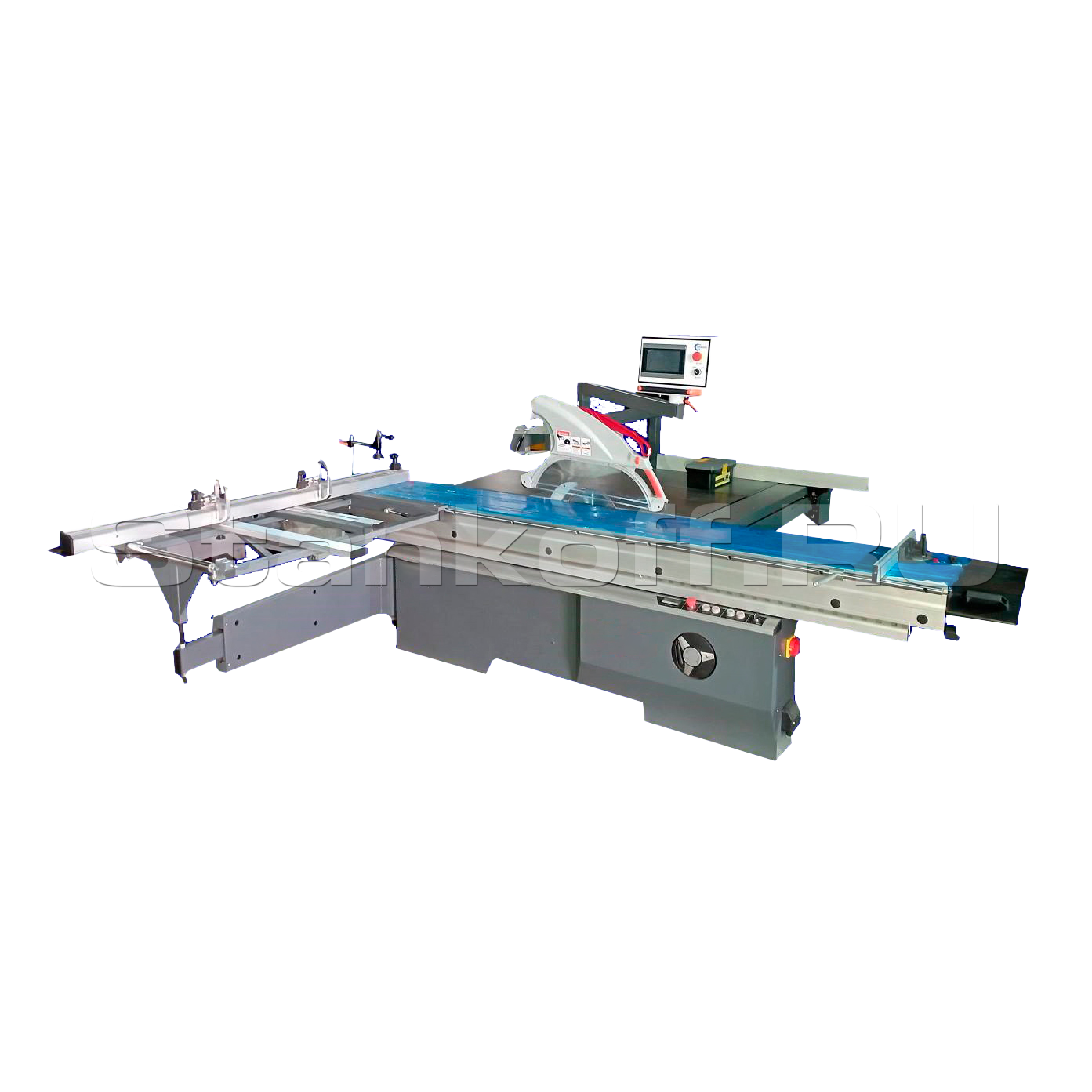 Упорная линейка с электроприводом c управлением через сенсорный пульт управления.Централизованная система смазки