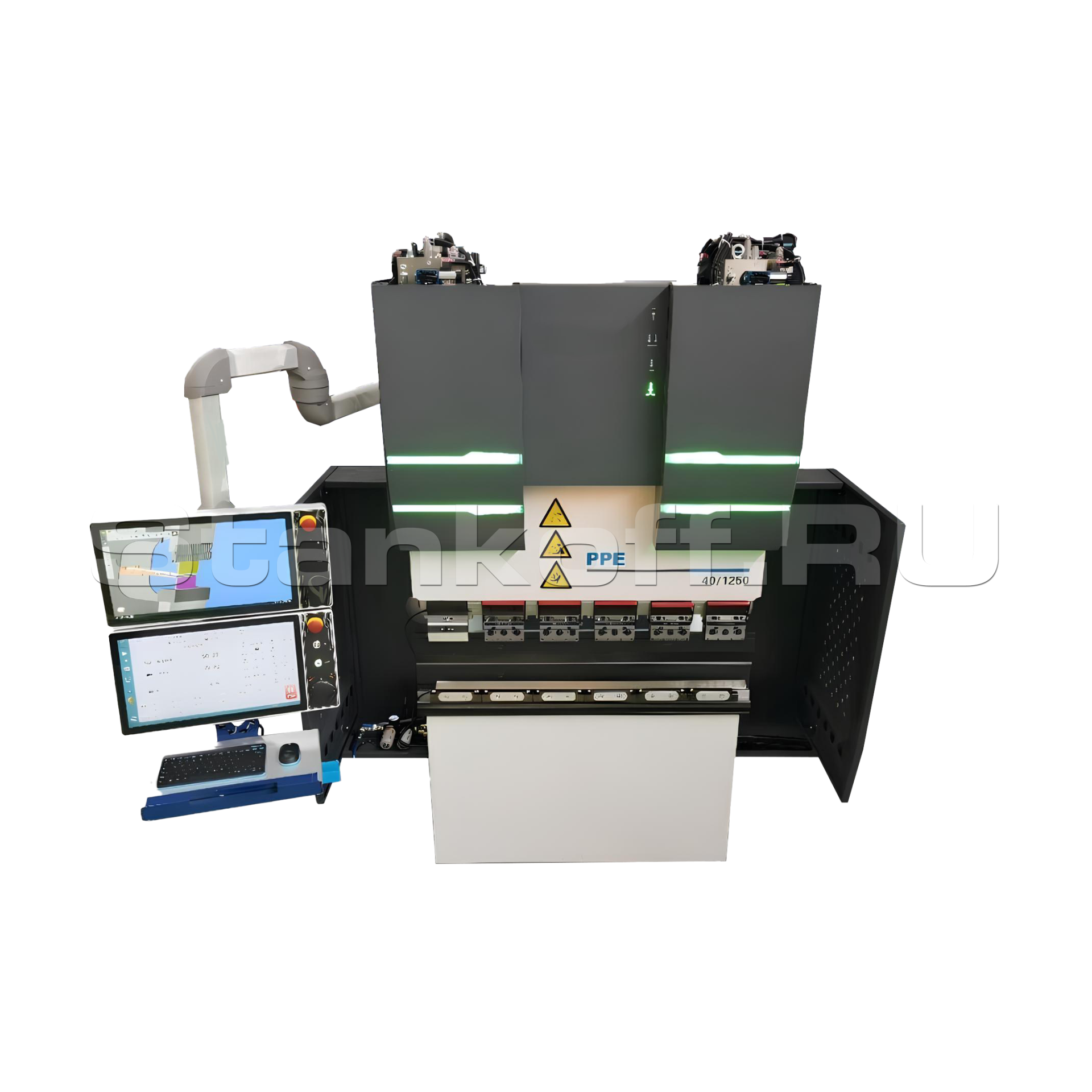 Гидравлический листогибочный пресс PPE40/1250 — современный высокоточный станок, предназначенный для гибки металлических листов различной толщины с высокой скоростью и точностью. Он оснащён четырьмя координатами управления (Y1, Y2, X, R) и интеллектуальной системой ЧПУ TECHMATION SCS900, обеспечивающей стабильную работу и удобное программирование. Станок использует гибридную сервонасосную систему, которая сочетает мощность гидравлики с энергоэффективностью сервопривода.