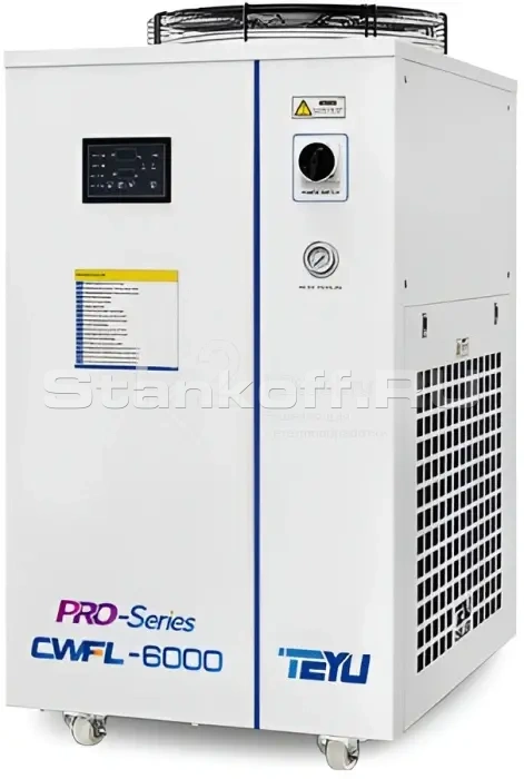 Позволяет оператору выполнять наиболее востребованные действия, не подходя к ЧПУ. Запуск/остановка программ, обратный ход, увеличение/уменьшение фокусного расстояния, изменение скорости подачи. Позволяет сократить время позиционирования режущей головы на 30%. Дает возможность контролировать раскрой и оперативно реагировать при необходимости.Водяной чиллер