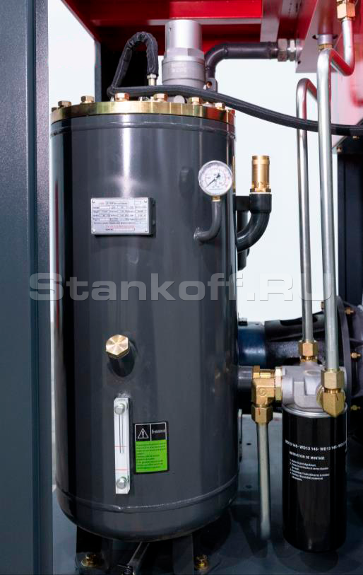 В вертикально расположенном маслобаке снижает остаточное содержание масла в сжатом воздухе до 3 мг/м3.Автономная система воздушного охлаждения