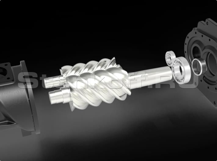 КПД более 99,8 %, что обеспечивает существенную экономию производства 1 м3 воздуха более чем на 5-6 %. Отсутствие дополнительных подшипников ведет к увеличению ресурса винтового блока до 80 000 моточасов. Почти нет вибраций за счёт точности и технологичности изготовления винтовой пары.Система управления со встроенным модулем WI-FI