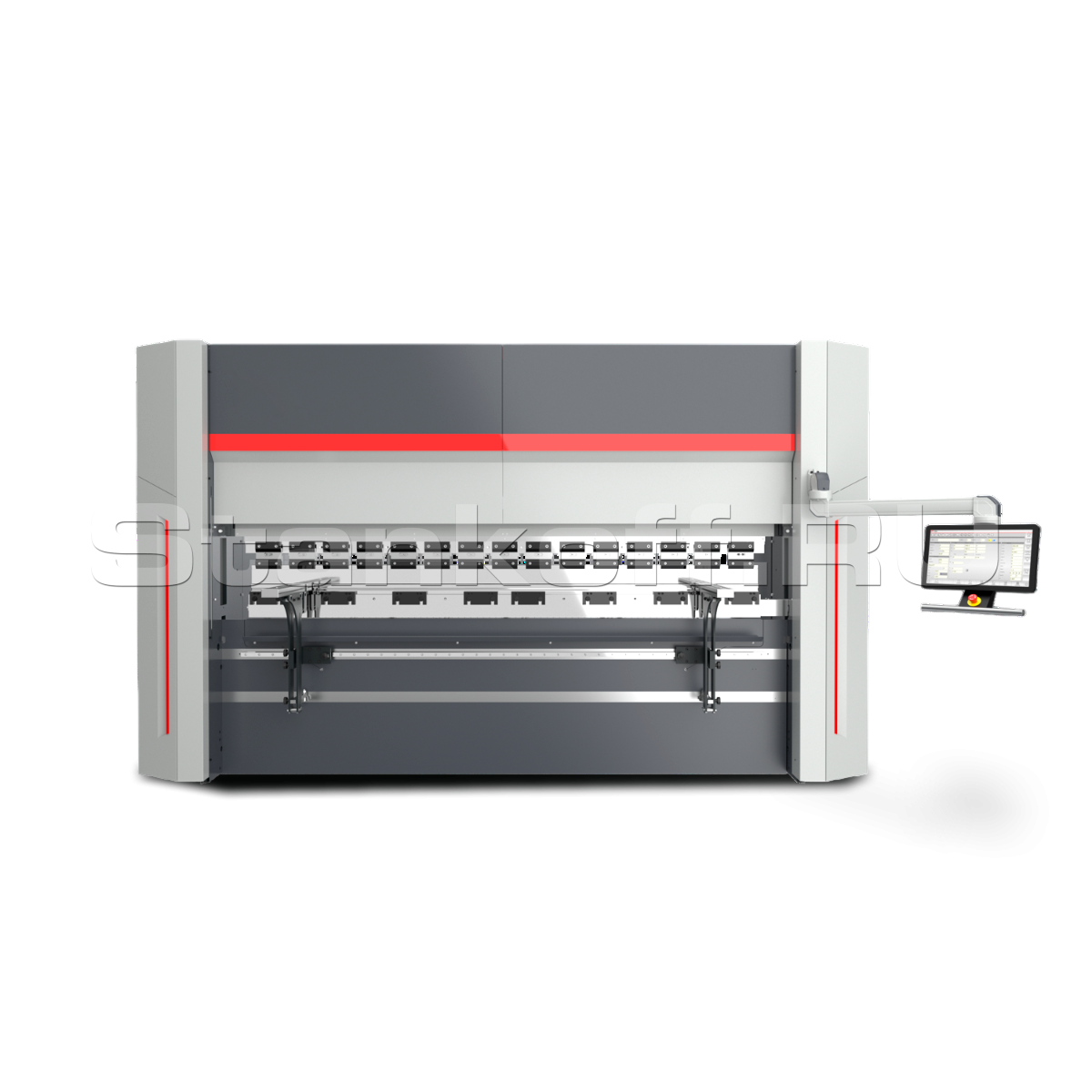 Этот синхронизированный пресс с 2D ЧПУ сочетает в себе простоту освоения, высокую скорость работы и современный функционал. Станок оснащен системой автоматического расчета угла гиба, необходимого усилия и позиций заднего упора, что гарантирует высочайшую точность и повторяемость деталей.