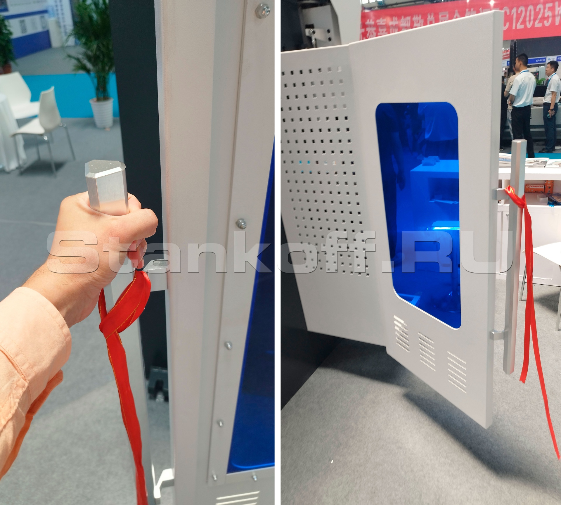 Боковая защита выполнена из стали и оснащена стеклянным окном для обзора процесса. Для удобства использования предусмотрены алюминиевые ручки.Точки крепления
