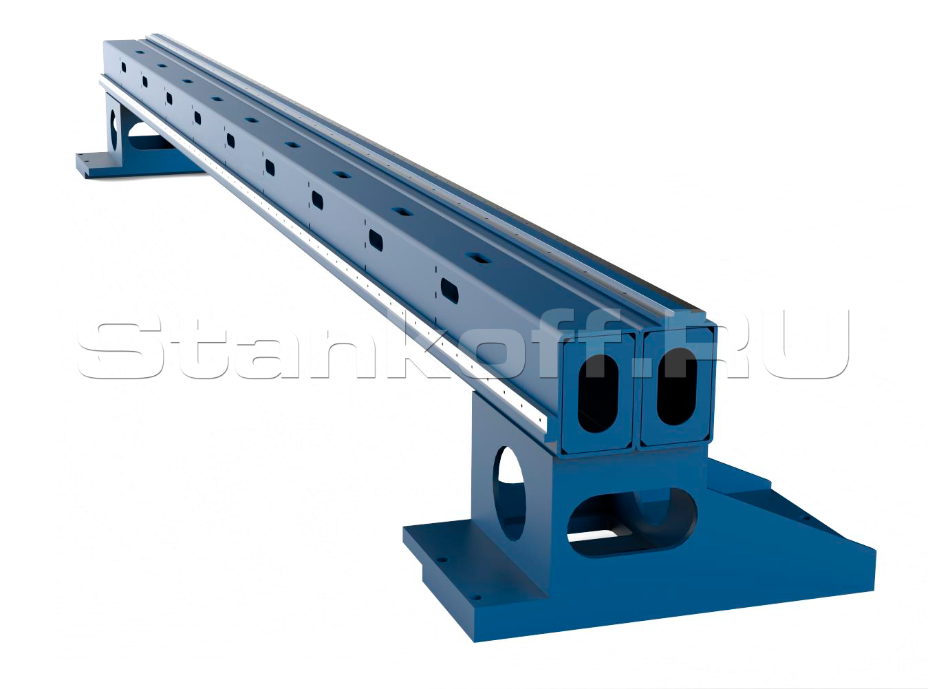 Самостоятельное производство станины позволяет заводу контролировать качество на каждом этапе, делая их станки редкостью на рынке по надёжности и стабильности. Станина выполнена из высококачественной листовой стали и проходит высокотемпературный отжиг, повышающий её прочность, твердость и износостойкость. В отличие от трубчатых конструкций, листовая станина более жёсткая, устойчивая к вибрациям и обеспечивает точный и стабильный рез. Для повышения прочности и минимизации деформаций корпус усилен ребрами жёсткости и дополнительными перекладинами. Все элементы проходят полный цикл обработки на заводе: сварку, термообработку для снятия внутренних напряжений и покраску.Стальной портал